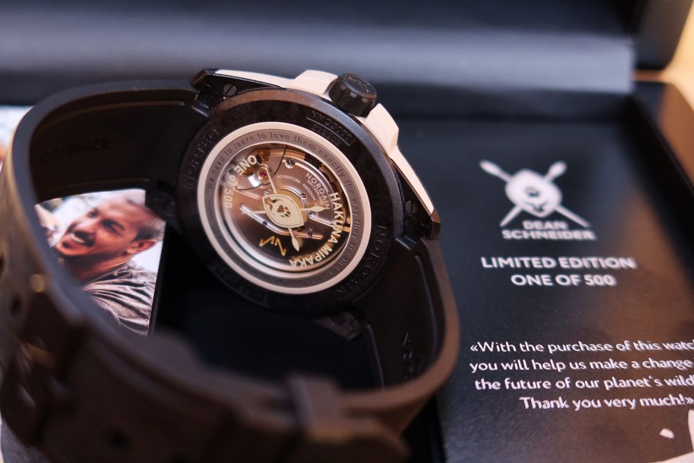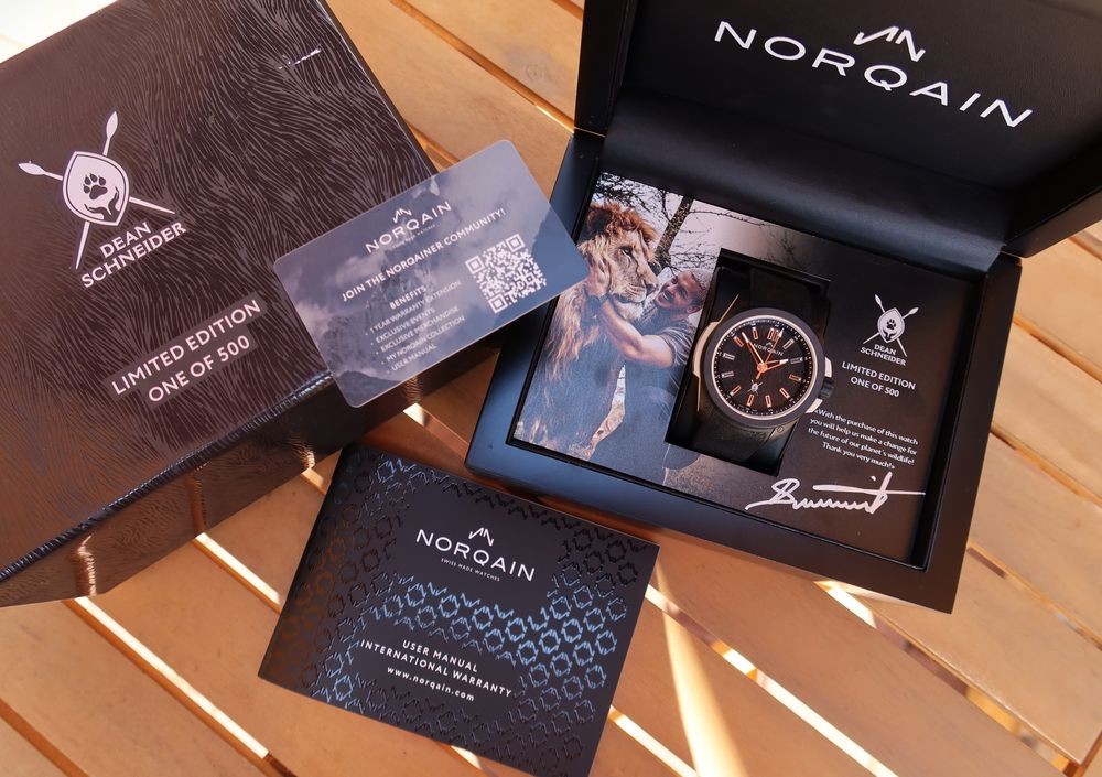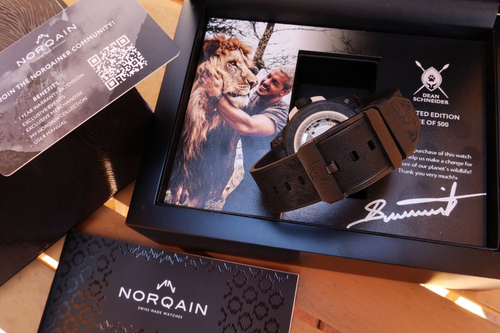 dovolte abych vám v zastoupení svého dobrého zákazníka nabídl něco od mladé švýcarské značky Norqain. Byla založna v roce 2018 Benem Küfferem. Spoluzakladatel je Ted Schneider člen rodiny která vlastnila Breitling a hokejová legenda Mark Streit. HAKUNA MIPAKA je exponovaná limitka s hezkým příběhem, který odkazuje na švýcarského ochránce zvířat Deana Schneidera a jeho záslužnou práci v jižní Africe. Část výtěžku z prodeje byla věnována na podporu jeho poslání.