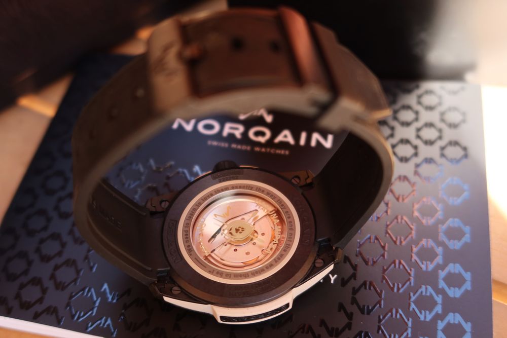 Uvntiř tiká NN20/1, 27 Jewels, 70 hodin rezerva chodu, 28.800 A/h, COSC Chronometer. Stroj vyrábí pro Norqain společnost Kennisi, proto mají společné DNA s Tudorem.