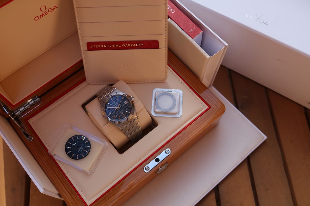K hodinkám je vnější krabice, vnitřní box, pouzdro na karty, karty, dva náhradní články, návod a černý datumový věnec s černým číselníkem.