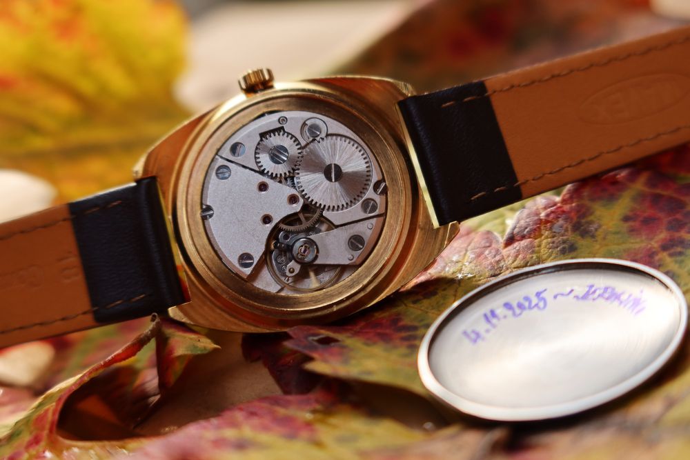 - Mimo celkový servis dostaly hodinky nové originální sklíčko ze starých zásob TVAR Pardubice n.p. a new old stock natahovací korunku.