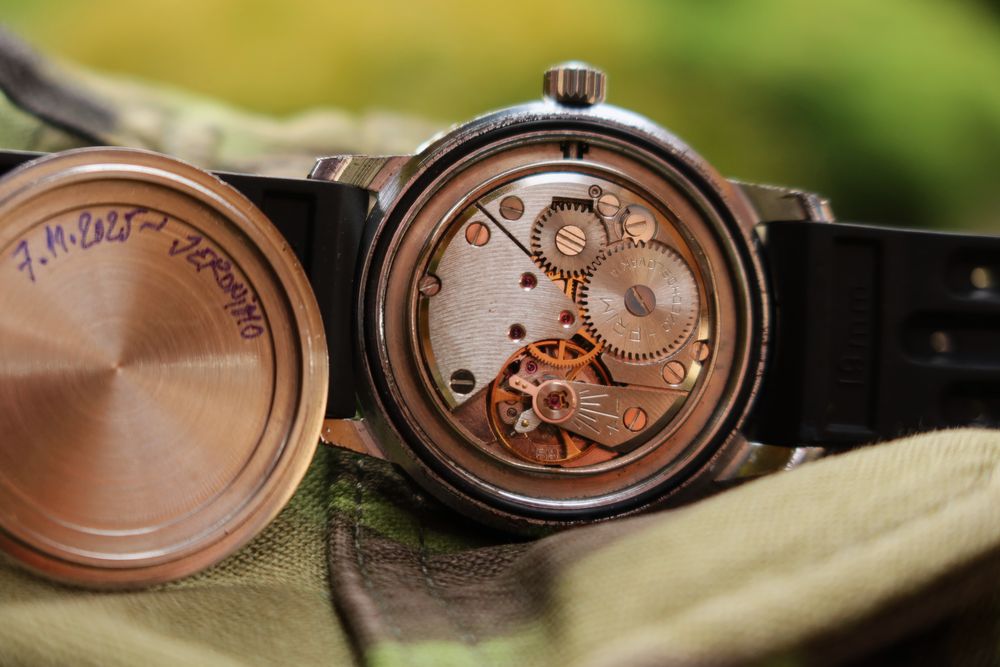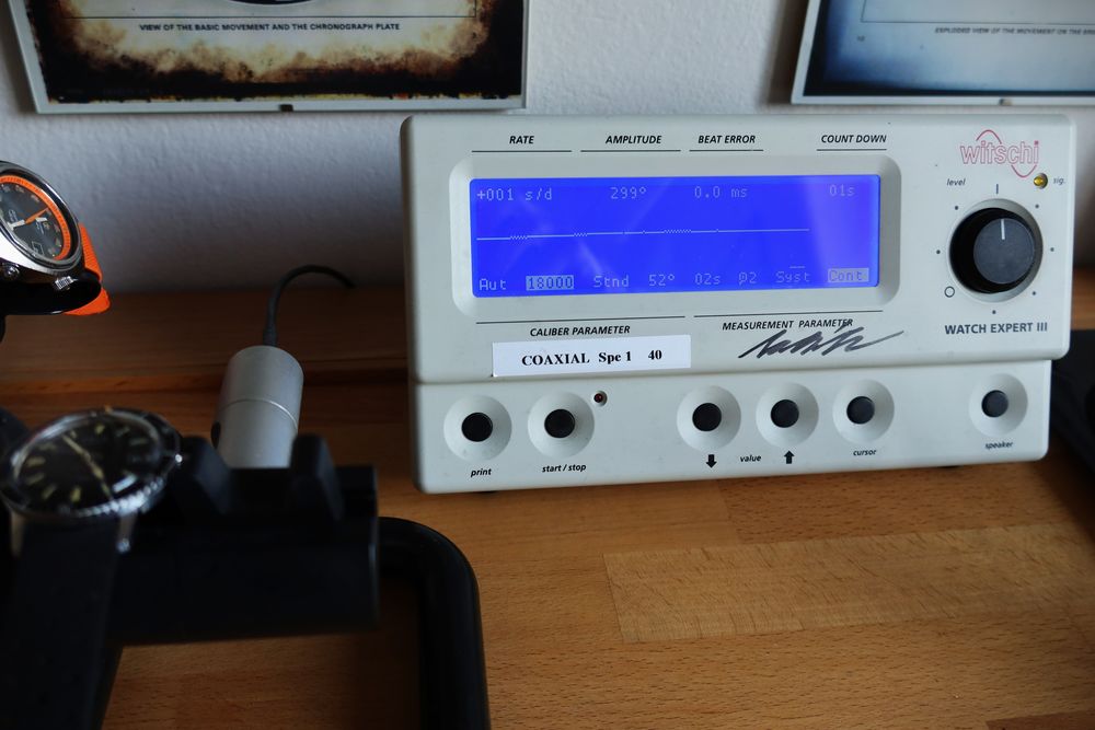Uvnitř tiká starý dobrý frézováním zdobený Třetišroubek 68.3, který u mě prošel tento týden celkovým servisem. Stroj byl rozebrán, vyčištěn, namazán, složen a seřízen viz foto z diagnostiky. Doklad za servis bude přiložen k hodinkám. Tímto jsou rok v záruce.